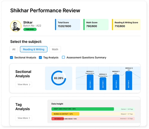 - Practice test analytics dashboards: Allow you to see performance trends by section, skill, and timing instead of reviewing answers in isolation