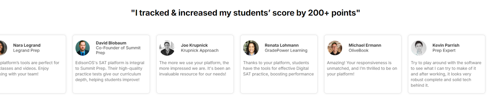 “EdisonOS mirrors Bluebook, boosting SAT scores by 200 points with excellent tracking, flexibility, and support. Highly recommended!”