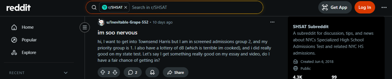 Recently, in an SHSAT subreddit, a student asked about their chances for admissions to Townsend Harris.